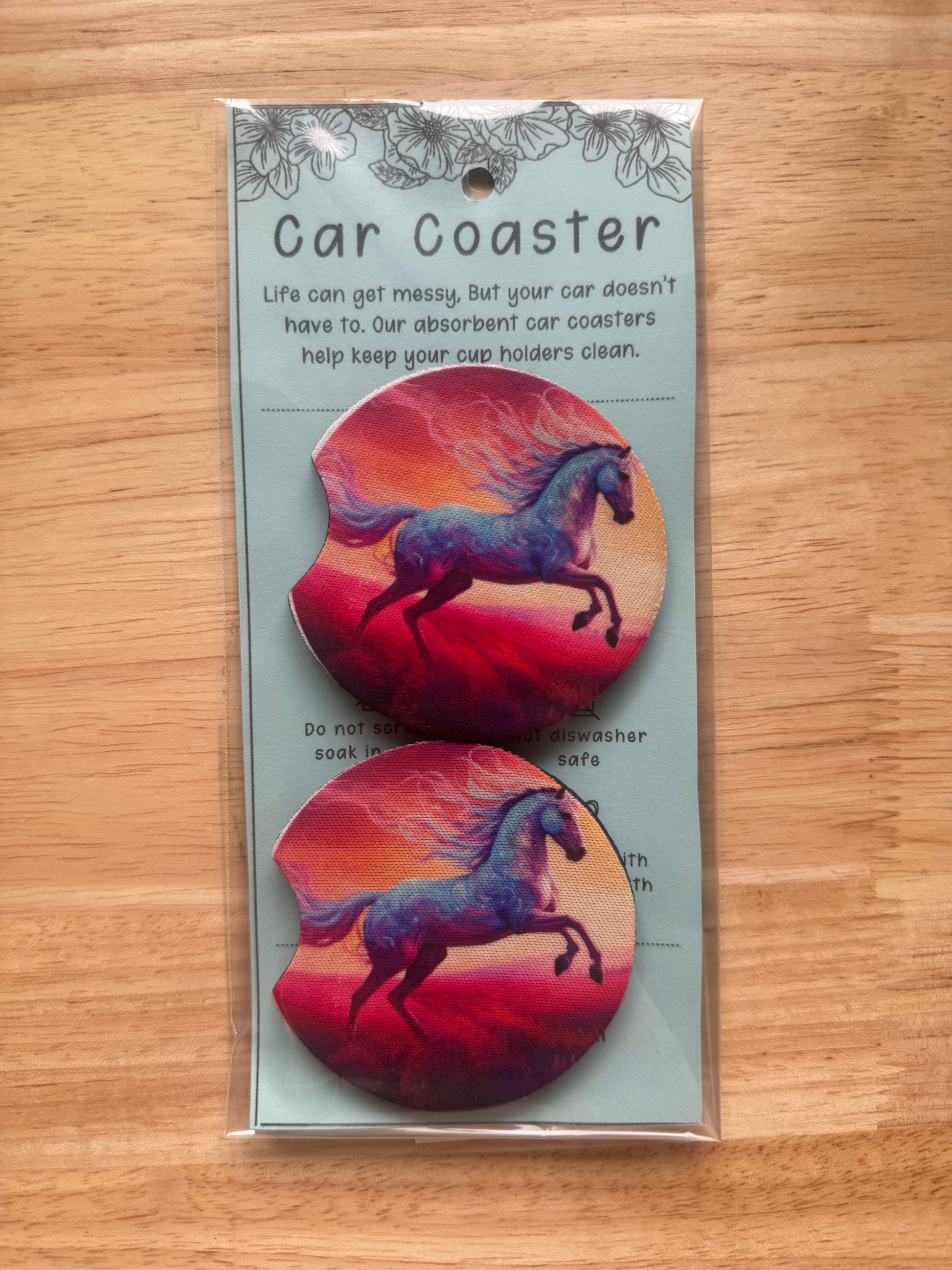 Car coasters are great! Absorbs moisture from condensation of your drinks so protects your car and look cute too!
