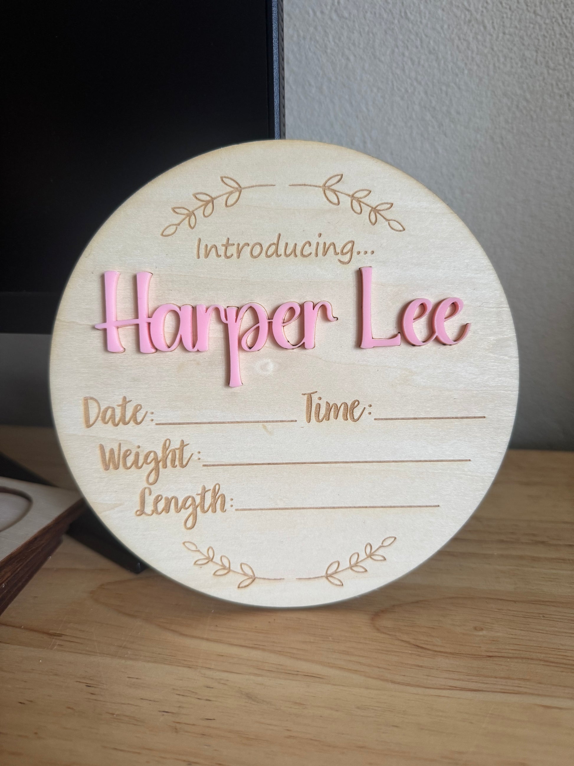 Our personalised wooden baby announcement plaques are the perfect touch for introducing your precious little one. With your baby’s name in 3D letters (colour of your choice) and space to record all their special details—date, time, weight, and length. Perfect for hospital photos, newborn announcements, or as a cherished memory to keep forever.