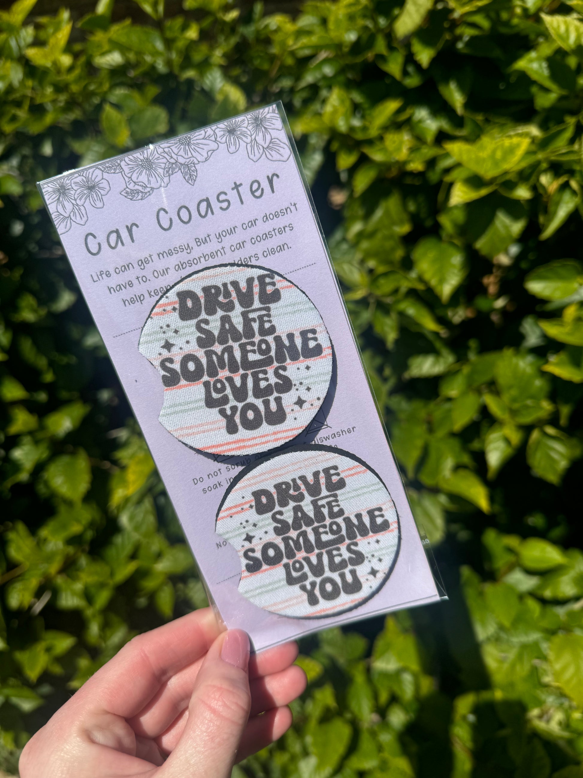 Car coasters are great! Absorbs moisture from condensation of your drinks so protects your car and look cute too!